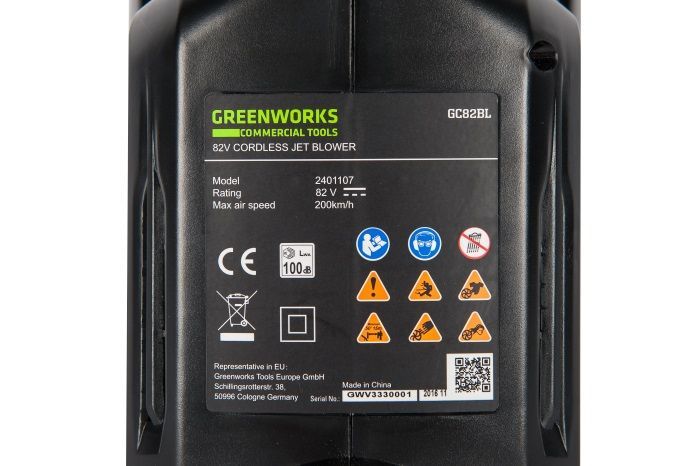 - 82V Commercial аккумуляторный воздуходув, арт. 2401107, модель GD82BL;