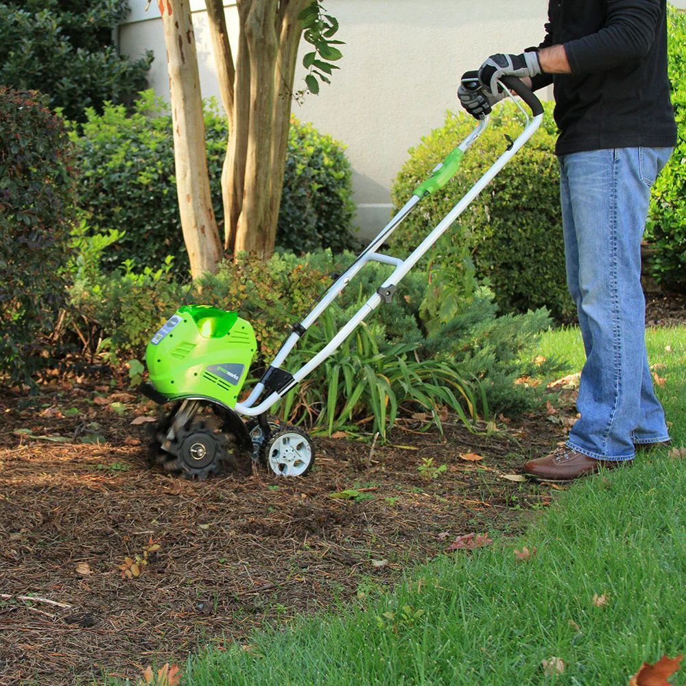 Аккумуляторный культиватор Greenworks G40TL – это компактный и долговечный садовый инструмент, идеально подходящий для подготовки почвы или ухода за грядками для посадки. Благодаря своим компактным размерам, он отлично подходит для работы в теплицах и других местах с ограниченным пространством.